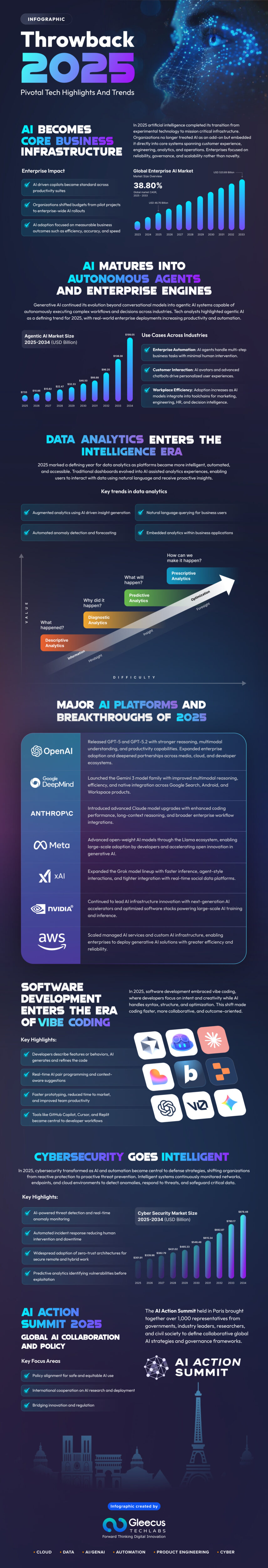 In 2025, artificial intelligence evolved from pilot projects into core business infrastructure, powering autonomous agents, intelligent analytics, and AI‑driven cybersecurity. Major breakthroughs from OpenAI, Google DeepMind, NVIDIA, and others accelerated enterprise adoption, redefined software development, and reshaped modern technology ecosystems globally.